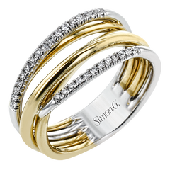 This beautiful ring features an intricate split-shank design with adorned with brilliant white diamonds.