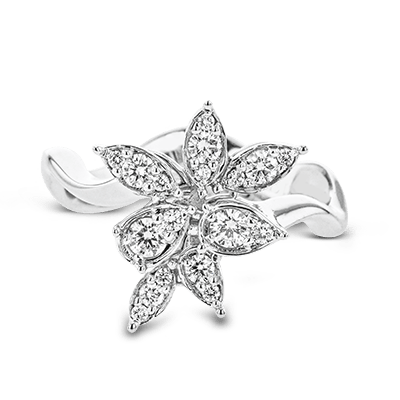 This one-of-a-kind ring features a floral-inspired design set with shimmering white diamonds.