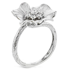 This delightful nature-inspired ring features a unique floral design with a pistil of sparkling white diamonds.