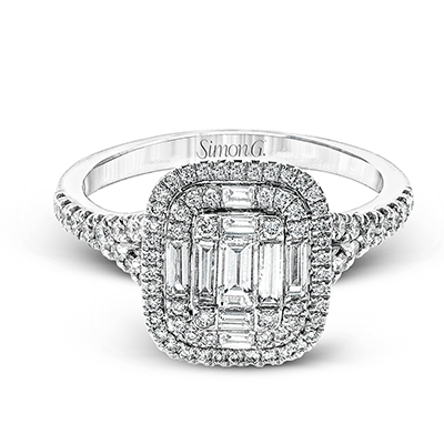 This stunning ring features an intricate mosaic crafted with a sparkling combination of round, princess and baguette diamonds.