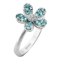The Paraiba Tourmaline Flower Ring features a stunning blue Paraiba flower and sparkling round diamonds, this ring is sure to make a statement.