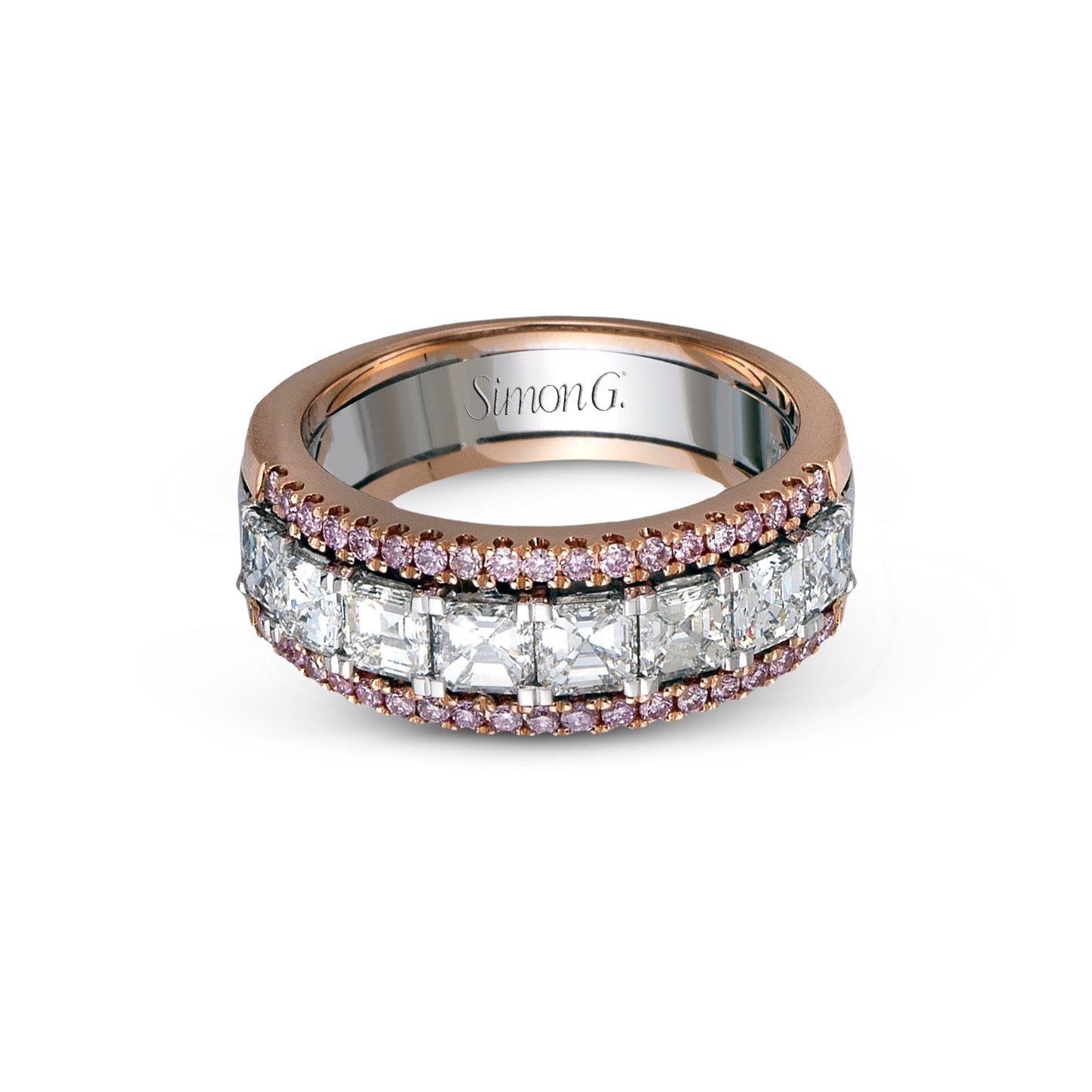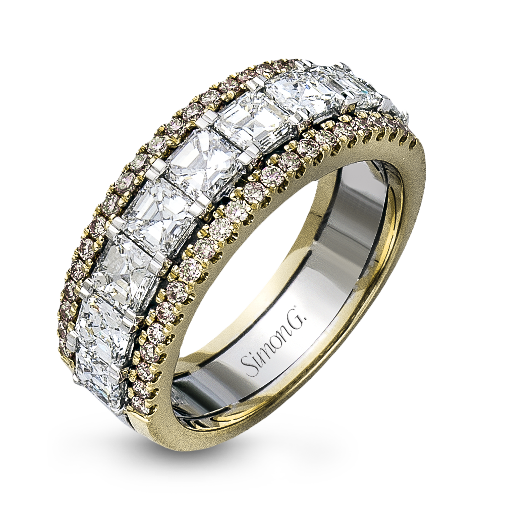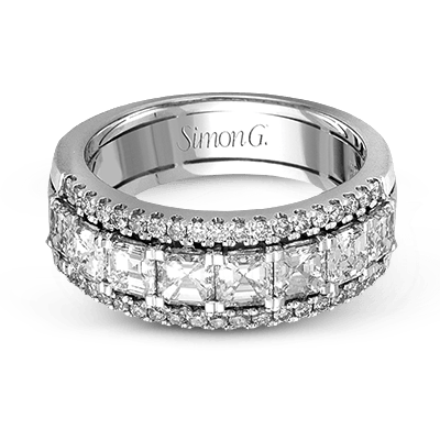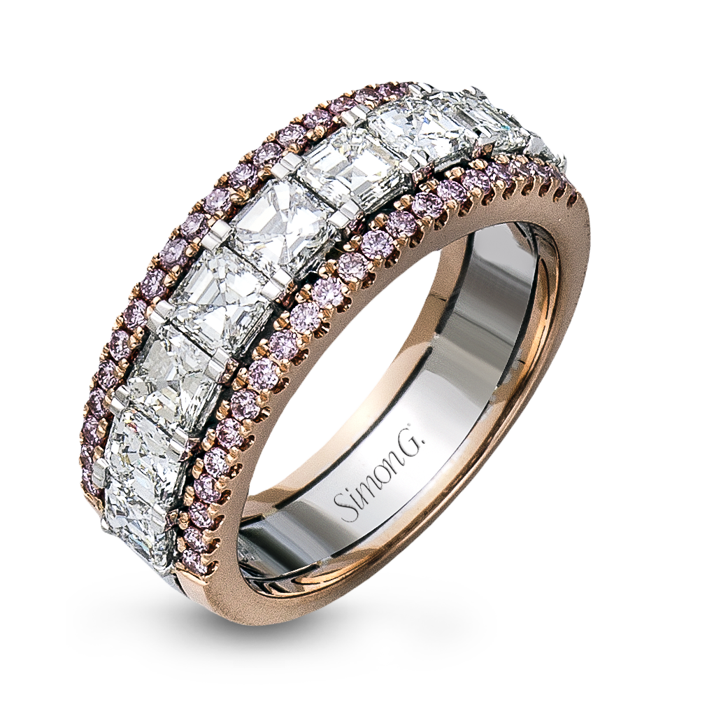 This lovely band features a contemporary design adorned with a brilliant combination of sparkling asscher and round diamonds.