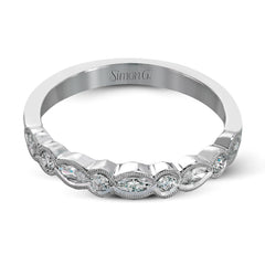 Classically designed with a modern flair, this wedding band features a glittering combination of round and marquise diamonds.