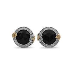 Faceted Black Onyx Earring in Sterling Silver with 18K Gold Flowers and Diamond