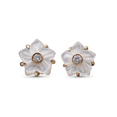 Celebrate the bloom of nature with delicate carved petals and soft shimmer. This earring from the Colorbloom Collection is handcrafted in 18K Gold, featuring mother of pearl, floral jewelry, white diamond, 18K gold, carved petals. A true collector’s piece that transforms gemstone storytelling into wearable art.