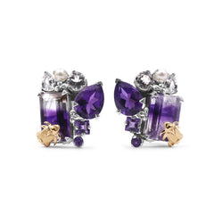 Bi-Color Amethyst Amethyst Natural Quartz and White Pearl Earring in Sterling Silver with 18K Gold Adam