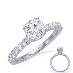 This Engagement Ring is available in 14K White Gold. There are a total of 24 stones. There are Rounds with a total carat weight of 0.65 set in a Micro Prong|Prong Set setting.