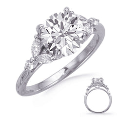 This Engagement Ring is available in 14K White Gold. There are a total of 6 stones. There are Marquise with a total carat weight of 0.24 set in a setting.There are Rounds stones with a total carat weight of 0.06 set in a .