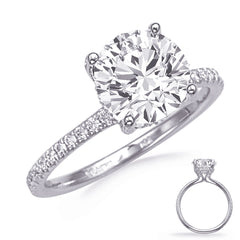 This Engagement Ring is available in 14K White Gold. There are a total of 58 stones. There are Rounds with a total carat weight of 0.33 set in a setting.