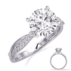 This Engagement Ring is available in 14K White Gold. There are a total of 34 stones. There are Rounds with a total carat weight of 0.17 set in a Micro Prong setting.