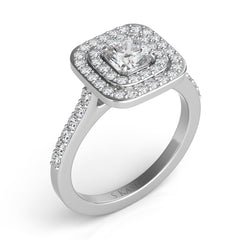 This Engagement Ring is available in 14K White Gold. There are a total of 52 stones. There are Rounds with a total carat weight of 0.6 set in a Micro Prong setting.