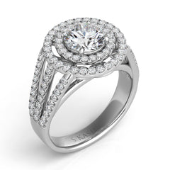 This Engagement Ring is available in 14K White Gold. There are a total of 100 stones. There are Rounds with a total carat weight of 0.76 set in a setting.