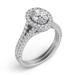 This Engagement Ring is available in 14K White Gold. There are a total of 86 stones. There are Rounds with a total carat weight of 0.7 set in a Micro Pave|Micro Prong setting.