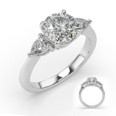This Engagement Ring is available in 14K White Gold. There are a total of 2 stones. There are Pear Shape with a total carat weight of 0.36 set in a setting.