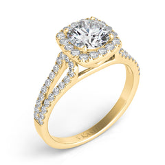 This Engagement Ring is available in 14K Yellow Gold. There are a total of 58 stones. There are Rounds with a total carat weight of 0.54 set in a setting.