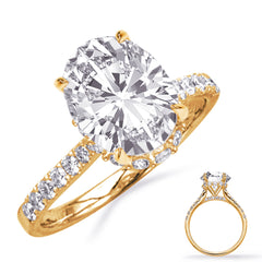 This Engagement Ring is available in 14K Yellow Gold. There are a total of 40 stones. There are Rounds with a total carat weight of 0.56 set in a Micro Prong|Prong Set setting.