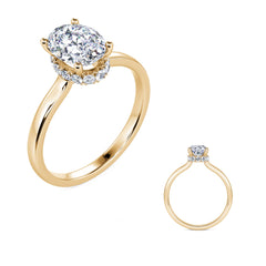 This Engagement Ring is available in 14K Yellow Gold. There are a total of 14 stones. There are Rounds with a total carat weight of 0.15 set in a Micro Prong setting.