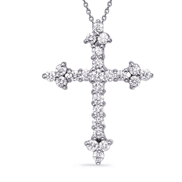 This Pendant is available in 14K White Gold. There are a total of 24 stones. There are Rounds with a total carat weight of 0.65 set in a setting.