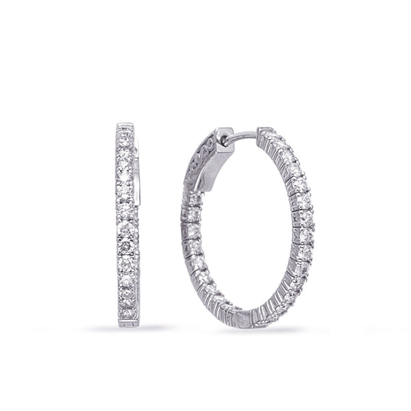 This Earring is available in 14K White Gold. There are a total of 50 stones. There are Rounds with a total carat weight of 1 set in a Prong Set setting.
