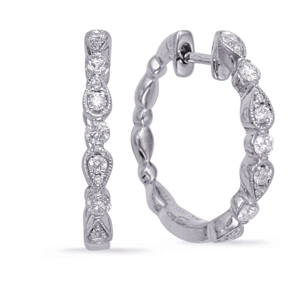 This Earring is available in 14K White Gold. There are a total of 22 stones. There are Rounds with a total carat weight of 0.32 set in a Micro Prong|Prong Set setting.