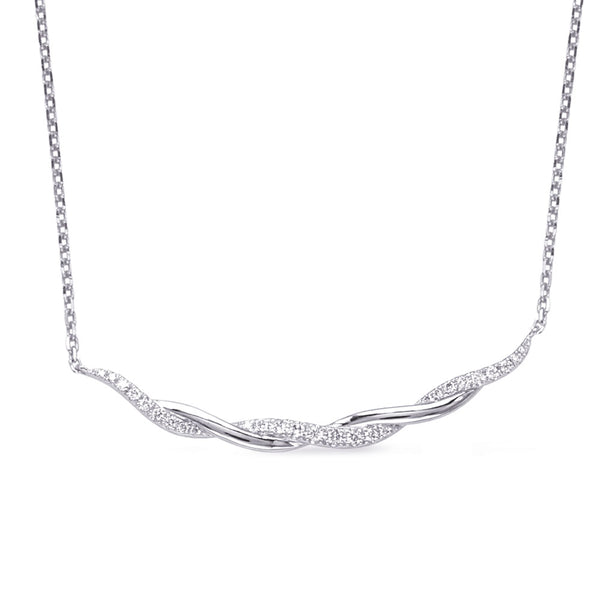 This Necklace is available in 14K White Gold. There are a total of 27 stones. There are Rounds with a total carat weight of 0.21 set in a Prong Set setting.