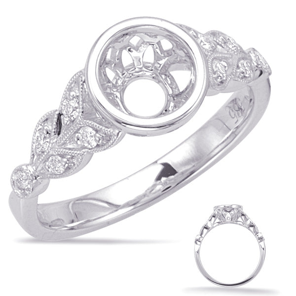 This Engagement Ring is available in 14K White Gold. There are a total of 10 stones. There are Rounds with a total carat weight of 0.12 set in a Bezel Set|Micro Prong setting.