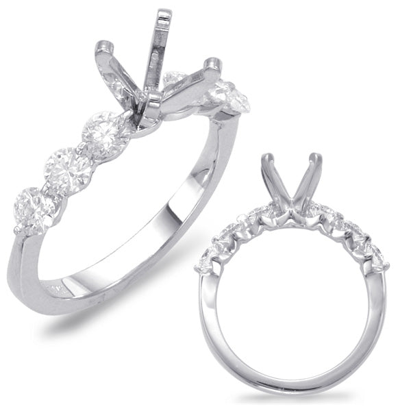 This Engagement Ring is available in 14K White Gold. There are a total of 6 stones. There are Rounds with a total carat weight of 0.68 set in a Shared Prongs setting.
