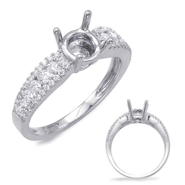This Engagement Ring is available in 14K White Gold. There are a total of 68 stones. There are Rounds with a total carat weight of 0.5 set in a Channel Set|Micro Prong setting.