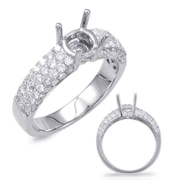 This Engagement Ring is available in 14K White Gold. There are a total of 86 stones. There are Rounds with a total carat weight of 0.97 set in a Micro Pave setting.