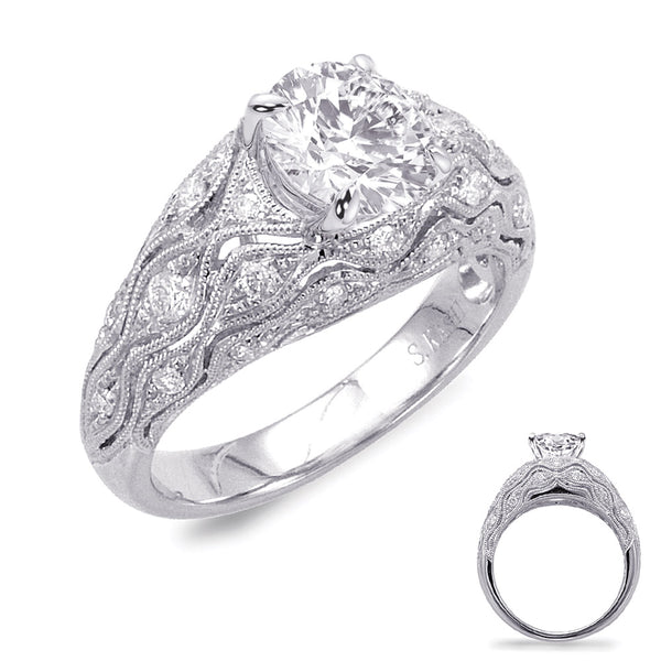 This Engagement Ring is available in 14K White Gold. There are a total of 24 stones. There are Rounds with a total carat weight of 0.3 set in a Micro Pave|Micro Prong setting.