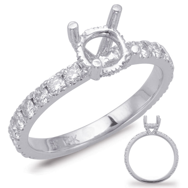 This Engagement Ring is available in 14K White Gold. There are a total of 42 stones. There are Rounds with a total carat weight of 0.7 set in a Micro Pave setting.