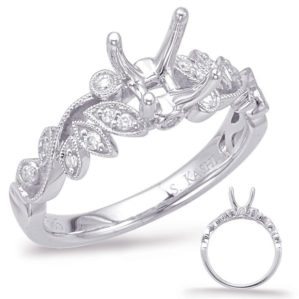 This Engagement Ring is available in 14K White Gold. There are a total of 16 stones. There are Rounds with a total carat weight of 0.14 set in a Bezel Set|Micro Prong|Shared Prongs setting.