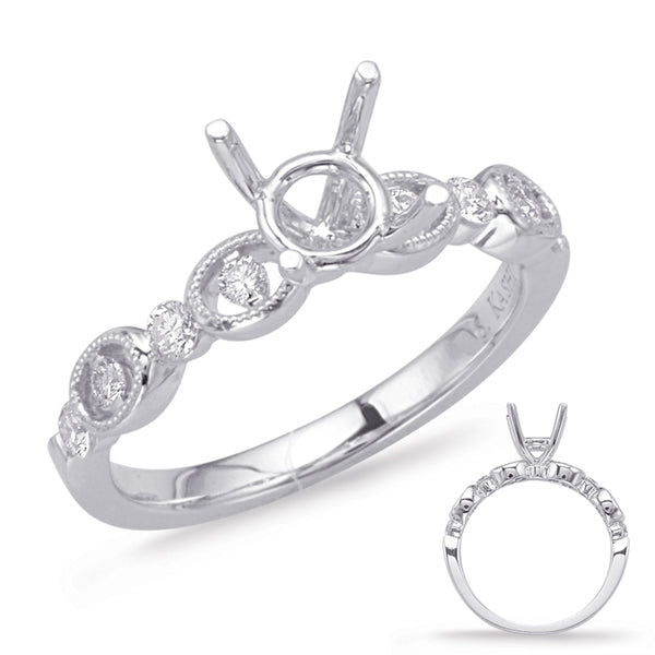 This Engagement Ring is available in 14K White Gold. There are a total of 8 stones. There are Rounds with a total carat weight of 0.2 set in a Micro Prong setting.