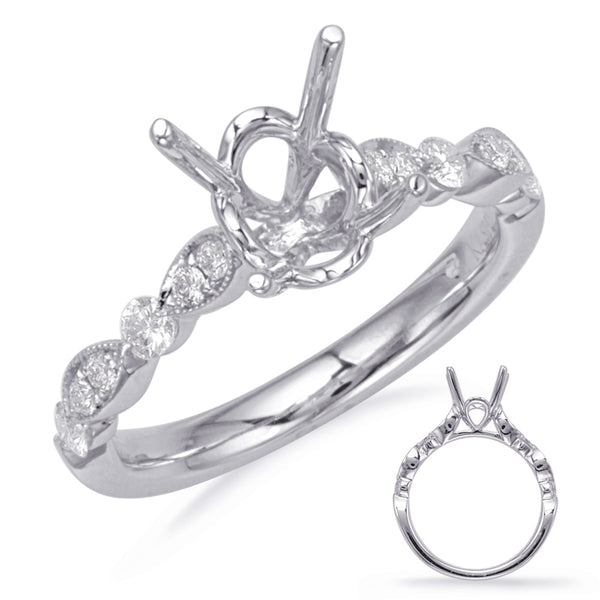 This Engagement Ring is available in 14K White Gold. There are a total of 12 stones. There are Rounds with a total carat weight of 0.27 set in a Micro Prong|Prong Set setting.