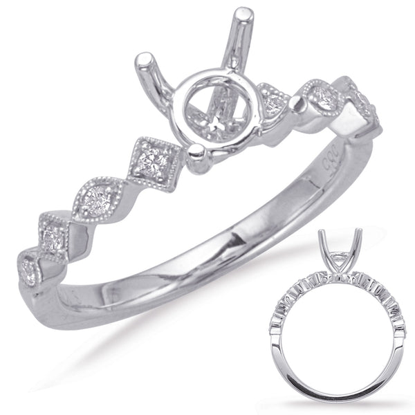 This Engagement Ring is available in 14K White Gold. There are a total of 8 stones. There are Rounds with a total carat weight of 0.1 set in a Micro Prong setting.