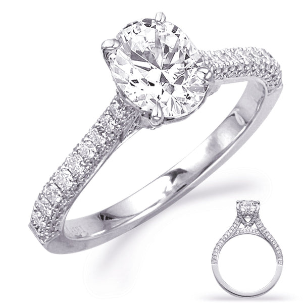 This Engagement Ring is available in 14K White Gold. There are a total of 132 stones. There are Rounds with a total carat weight of 0.58 set in a Micro Prong setting.