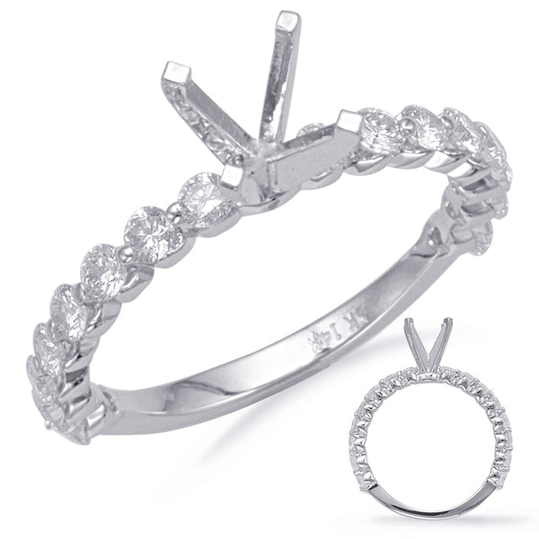 This Engagement Ring is available in 14K White Gold. There are a total of 16 stones. There are Rounds with a total carat weight of 0.79 set in a Prong Set|Shared Prongs setting.
