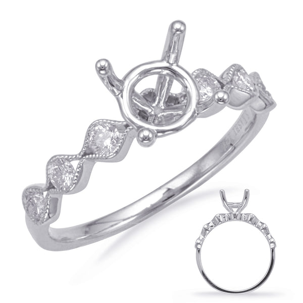 This Engagement Ring is available in 14K White Gold. There are a total of 6 stones. There are Rounds with a total carat weight of 0.26 set in a Channel Set setting.