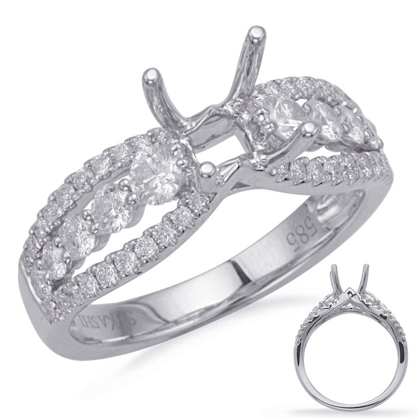 This Engagement Ring is available in 14K White Gold. There are a total of 50 stones. There are Rounds with a total carat weight of 0.77 set in a Micro Prong|Prong Set|Shared Prongs setting.