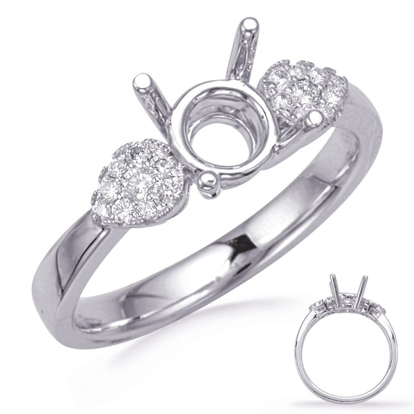 This Engagement Ring is available in 14K White Gold. There are a total of 18 stones. There are Rounds with a total carat weight of 0.14 set in a Micro Pave|Prong Set setting.