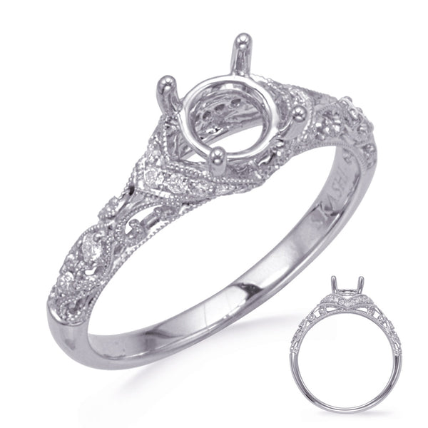 This Engagement Ring is available in 14K White Gold. There are a total of 24 stones. There are Rounds with a total carat weight of 0.14 set in a setting.