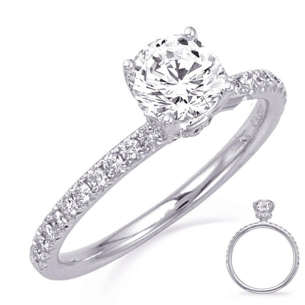 This Engagement Ring is available in 14K White Gold. There are a total of 38 stones. There are Rounds with a total carat weight of 0.93 set in a Micro Prong setting.