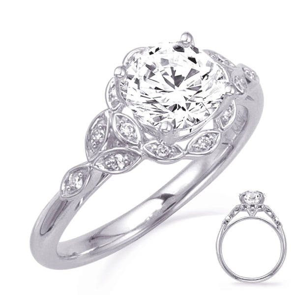 This Engagement Ring is available in 14K White Gold. There are a total of 14 stones. There are Rounds with a total carat weight of 0.08 set in a Micro Prong setting.