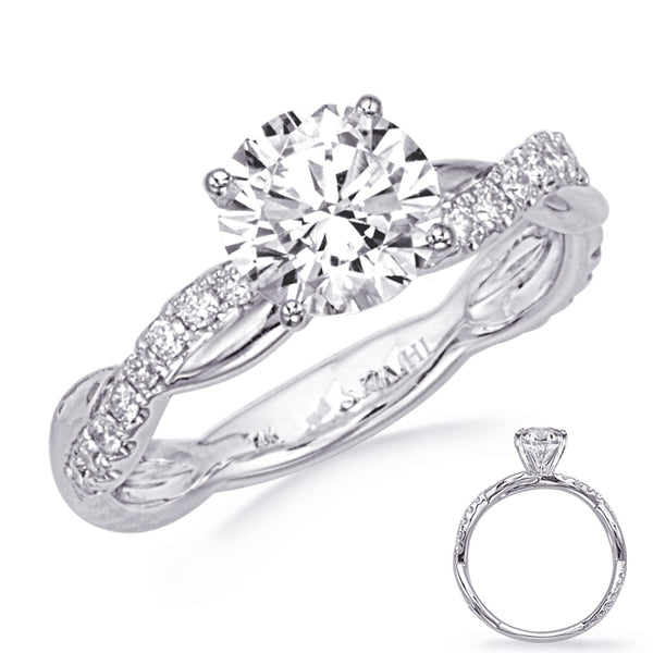 This Engagement Ring is available in 14K White Gold. There are a total of 30 stones. There are Rounds with a total carat weight of 0.28 set in a Micro Prong setting.