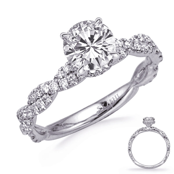 This Engagement Ring is available in 14K White Gold. There are a total of 82 stones. There are Rounds with a total carat weight of 0.45 set in a Micro Prong setting.