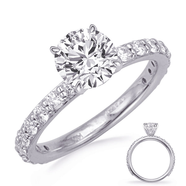 This Engagement Ring is available in 14K White Gold. There are a total of 18 stones. There are Rounds with a total carat weight of 0.7 set in a Prong Set setting.