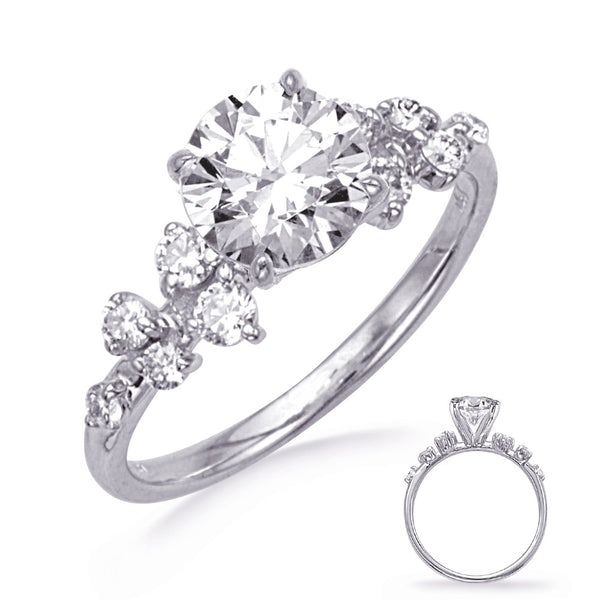 This Engagement Ring is available in 14K White Gold. There are a total of 10 stones. There are Rounds with a total carat weight of 0.38 set in a setting.