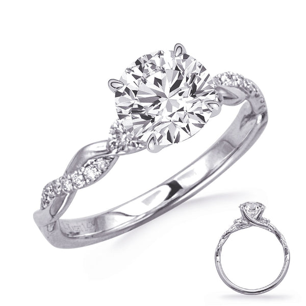 This Engagement Ring is available in 14K White Gold. There are a total of 18 stones. There are Rounds with a total carat weight of 0.25 set in a Micro Prong setting.