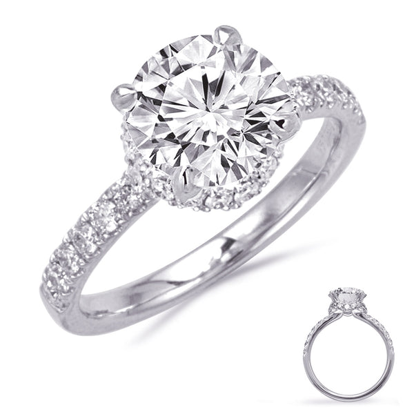 This Engagement Ring is available in 14K White Gold. There are a total of 28 stones. There are Rounds with a total carat weight of 0.4 set in a Prong Set setting.