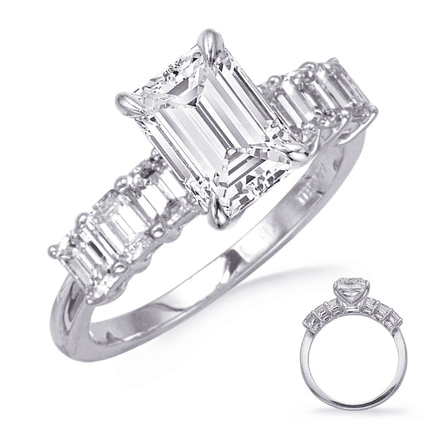 This Engagement Ring is available in 14K White Gold. There are a total of 6 stones. There are Emerald Cut with a total carat weight of 1.05 set in a setting.